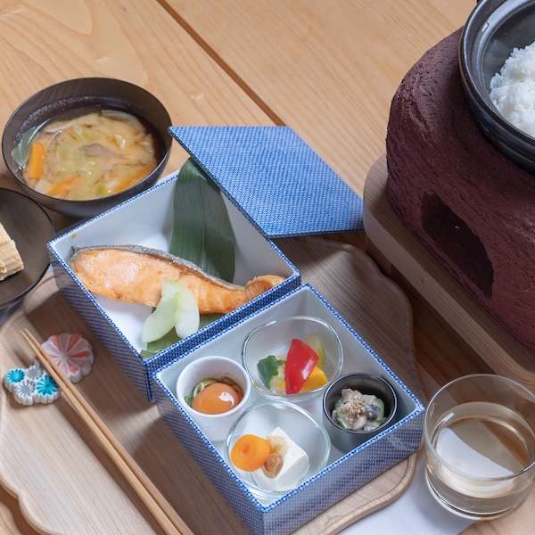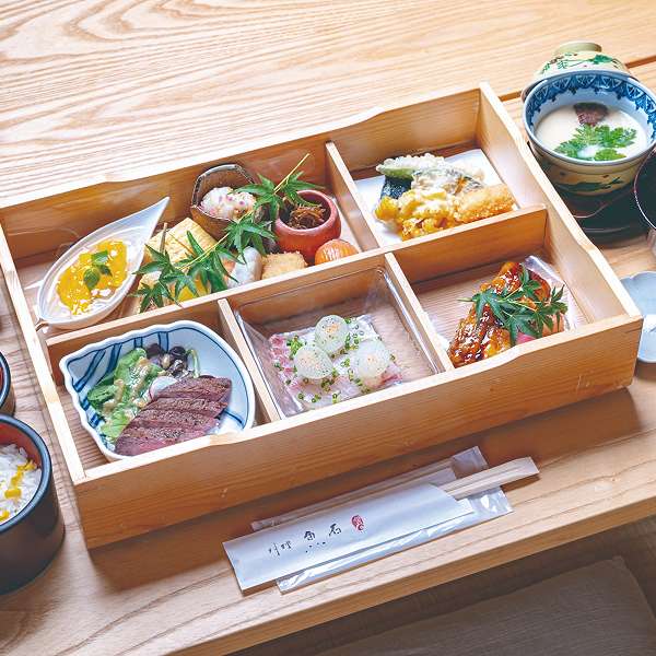 安土の名店「料理魚石」より、NIPPONIA 五個荘 近江商人の町限定の近江の旬の食材を使った仕出し弁当をお部屋にお届けいたします
